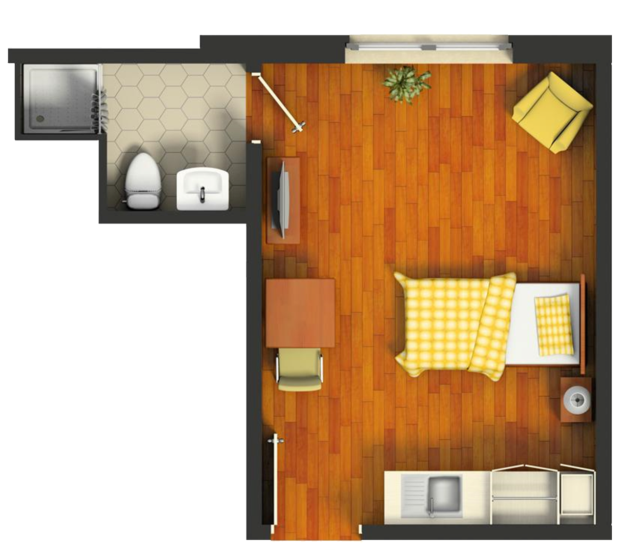 Un lit électrique avec matelas à mémoire de forme, couvertures, draps, oreillers, couvre-lit et alèses, une garde-robe, une table de nuit, une table, une chaise, un fauteuil électrique, un réfrigérateur, un coffre-fort et un téléphone sont présents dans toutes nos chambres. Vous êtes libre d'aménager votre chambre à votre gout avec des cadres, photos de famille ou mobilier qui vous tiennent à cœur pour que votre chambre soit votre espace privé et personnalisé.